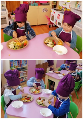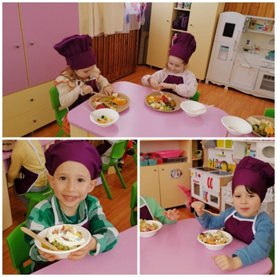 Dorind să afle noutăți despre gustările sănătoase, copiii au  învățat să prepare  o delicioasă salată de fructe, plină de culoare și vitamine. Bucuria a însoțit întreaga activitate, voia bună s-a simțit din plin.